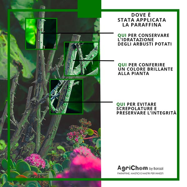 Agrichem si occupa della vendita di cere plastiche e paraffine protettive professionali per il confezionamento di rosai. L’utilizzo delle paraffine in questo ultimo ambito, consente di conservare l’idratazione degli arbusti potati e confezionati nella torba durante lo stoccaggio e/o durante la distribuzione.